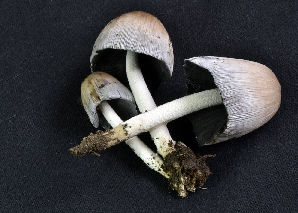 Láminas : Muy numerosas y apretadas, libres o adherentes, estrechas, al principio blanco-grisáceas, después rosadas para finalizar negras y delicuescentes al igual que su sombrero.