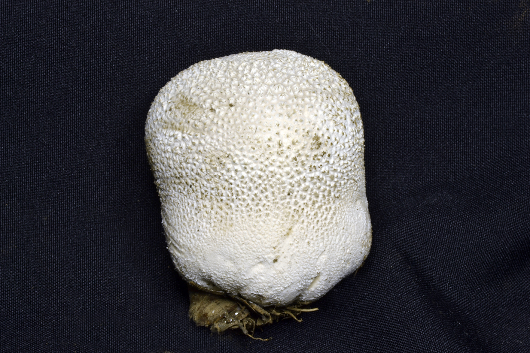 Carpóforo: Globoso o en forma de pera, con la cima achatada, de 6-15 cm de diámetro y 8-12 cm de altura, sin pie aparente o con pie corto, grueso, acanalado y arrugado hacia la base. Exoperidio blanco, separable del endoperidio, totalmente cubierto de verrugas flocosas, piramidales y poligonales que pardean en la punta, se cuartea siguiendo estas y desaparecen en la madurez. Endoperidio blanco, pardo al madurar, de textura parecida al papel, con marcas poligonales correspondientes al cuarteamiento del exoperidio, que se rompe de forma irregular dejando libre el polvo esporal.