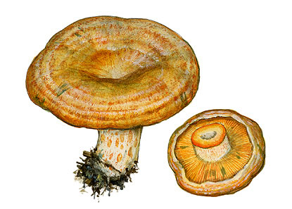 LACTARIUS : Setas cuyas láminas y su pie al ser fracturado segregan una una especie de leche blancuzca o coloreada (amarillo,naranja..), y cuyas láminas son adherentes o decurrentes, pero nunca bifurcadas. El pie carece de anillo y sus esporadas suelen ser blancas, crema o amarilla.