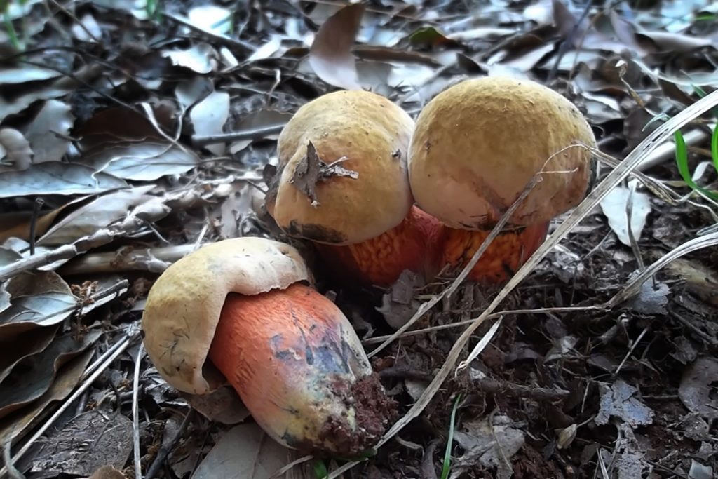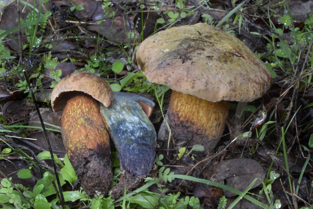 Confusiones : Con Suillellus queletii, cuya base es rojo remolacha y azulea más intensamente al corte.