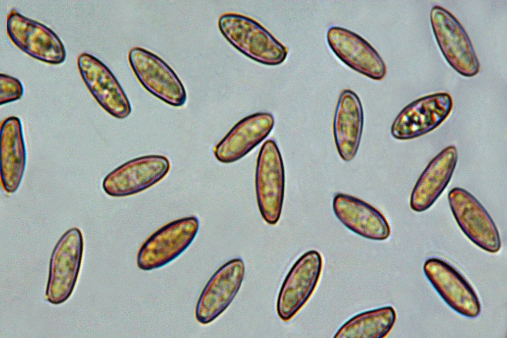 Esporas : Esporada marrón oliva, esporas fusiformes de 10-16 x 4-6 micras, lisas.