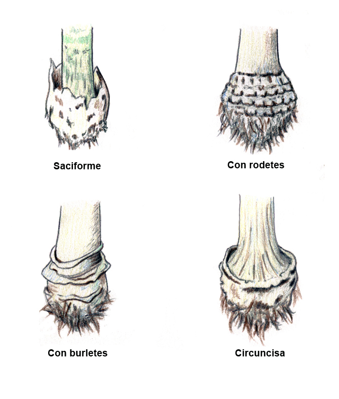 El estudio de la volva, nos ayudará a definir de que especie se trata. Entre los géneros que cuentan con volva podemos diferenciar a aquellos que tienen láminas, en cuyo caso estaríamos ante el género Amanita (Láminas blancas o excepcionalmente amarillas) o género Volvariella (láminas rosaceas) y los que no tienen láminas, tratandose en este caso de algunos gasteromicetes cuyos inicios son en forma de huevo.